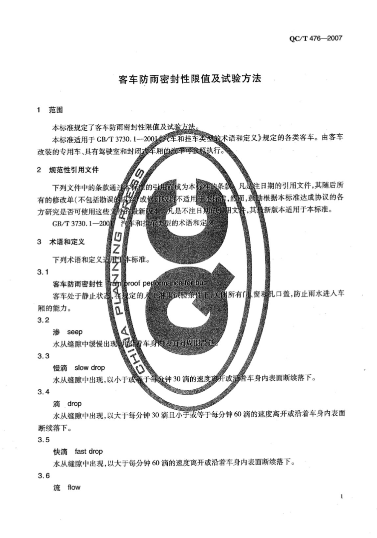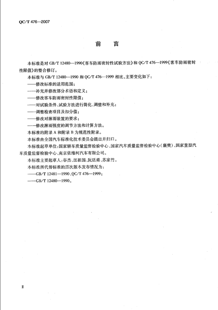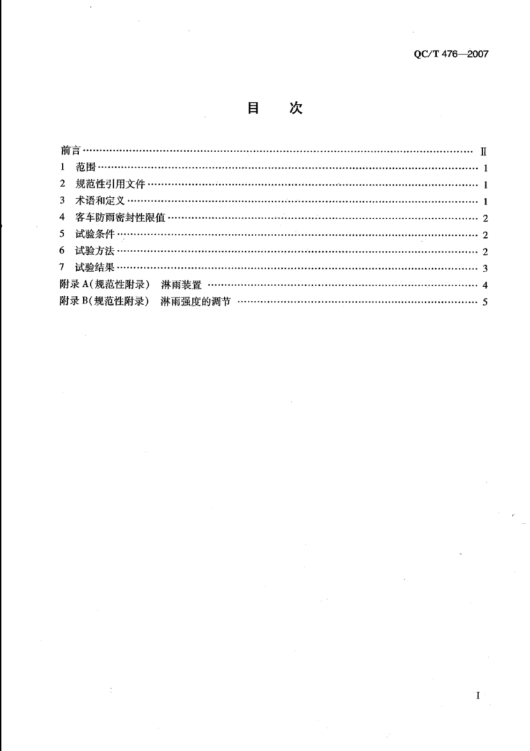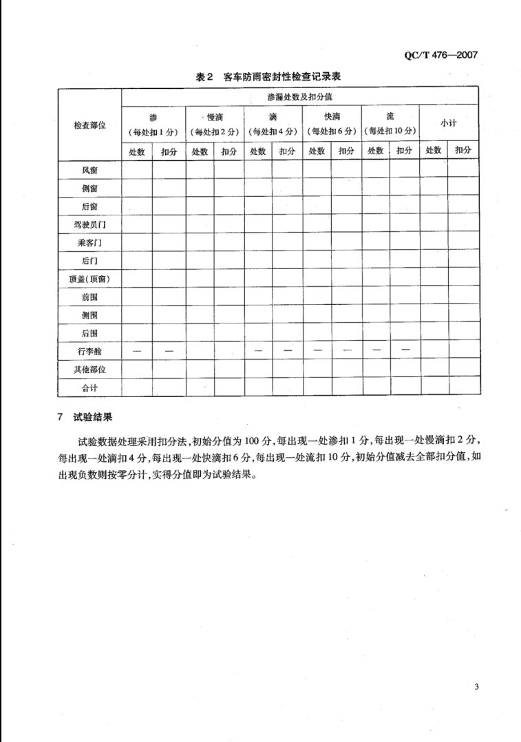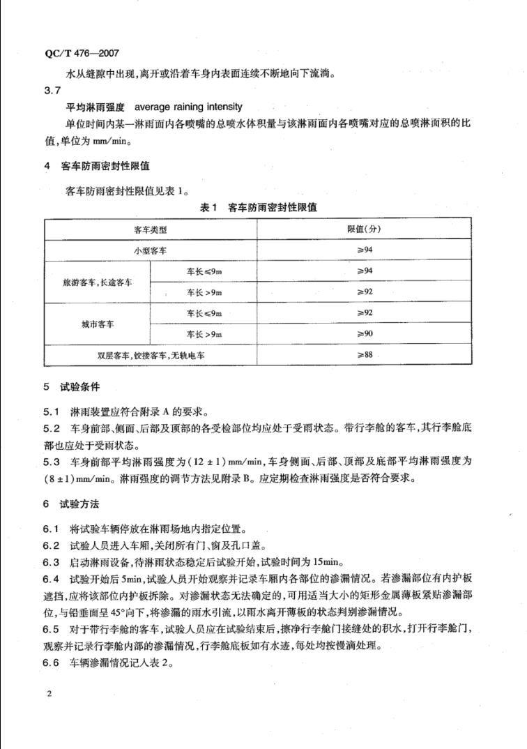 QC/T 476-2007《客車防雨密封性限值及試驗方法》