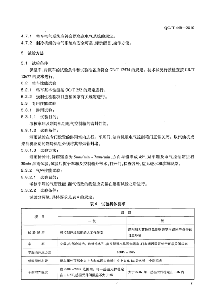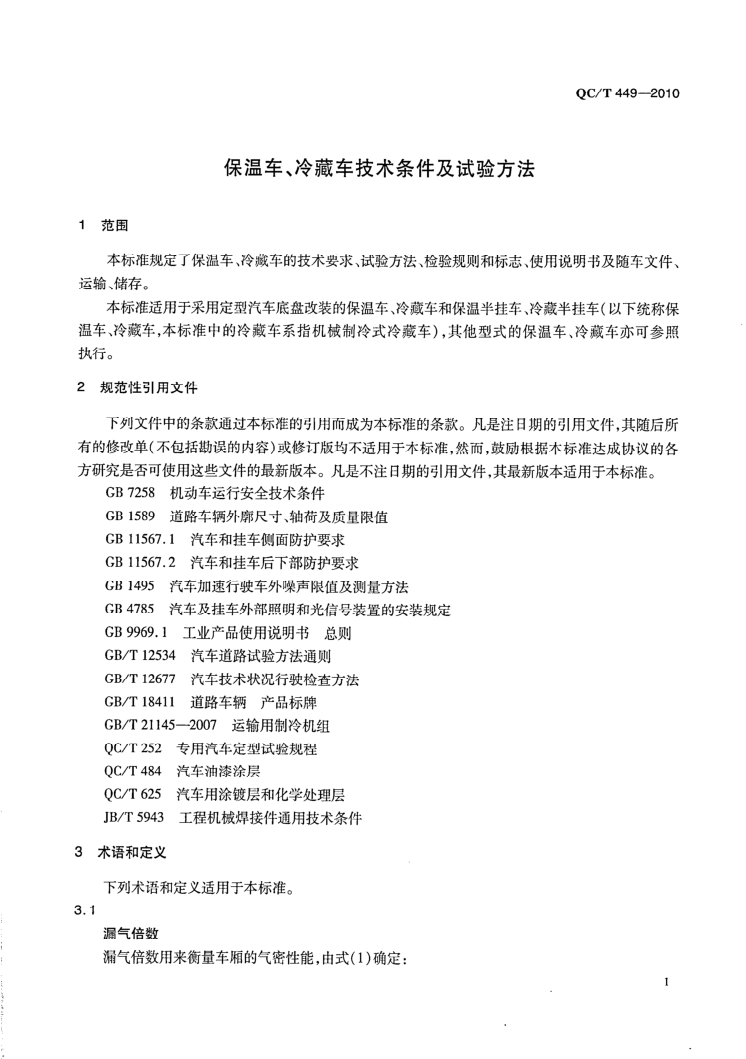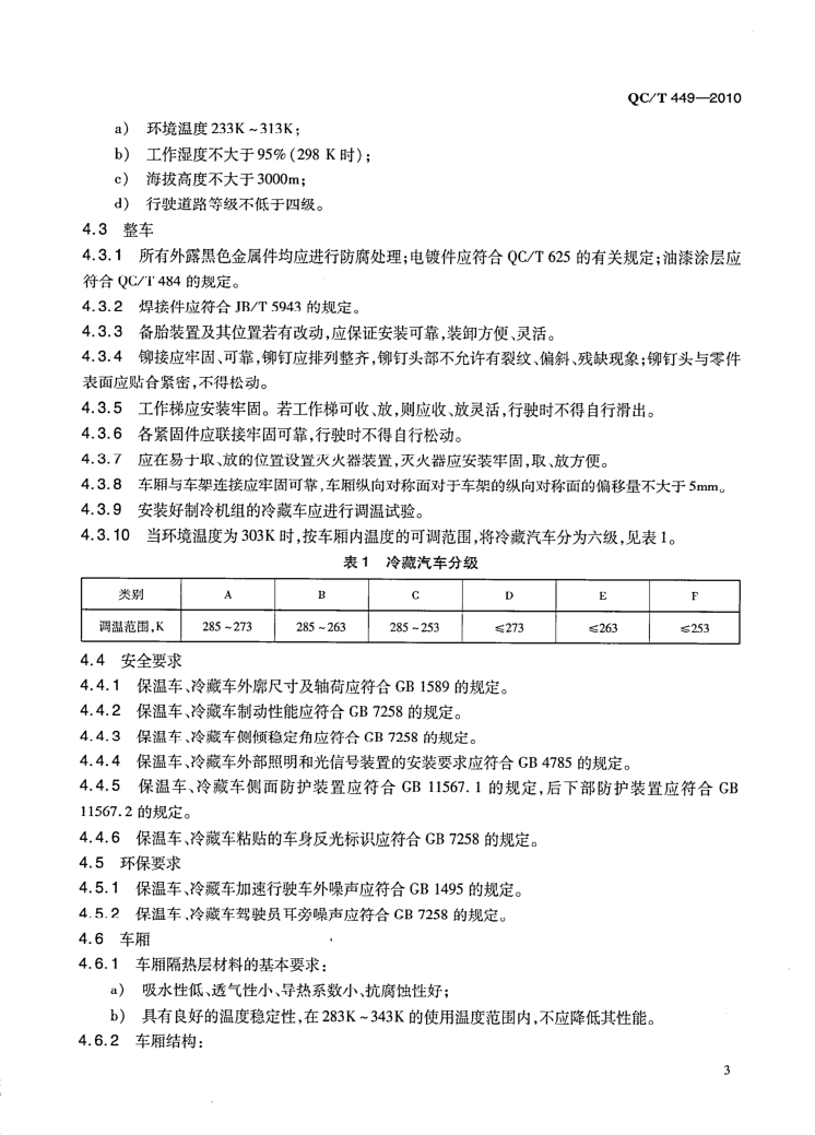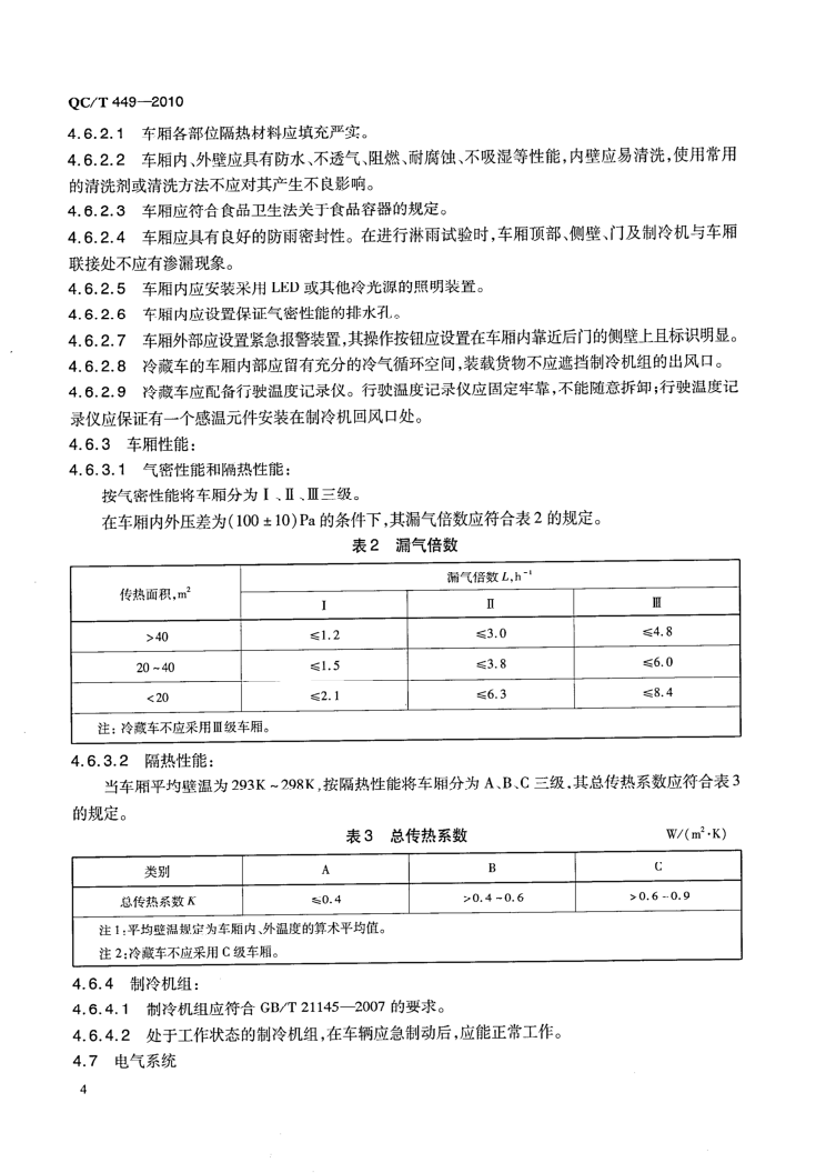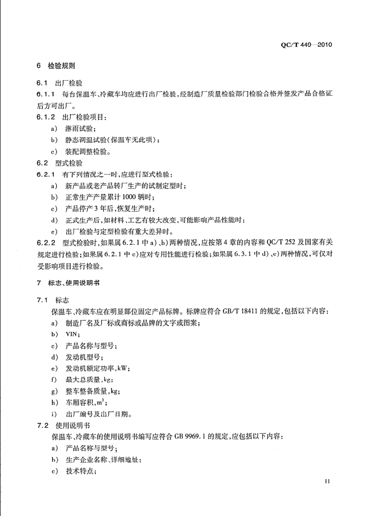 QC/T 449-2010《保溫車、冷藏車技術(shù)條件及試驗方法》