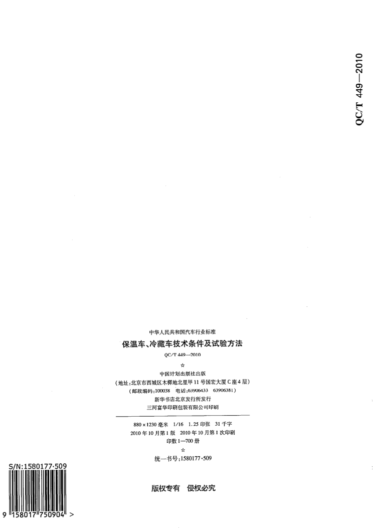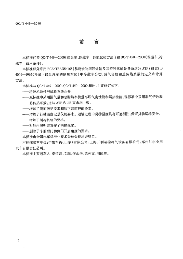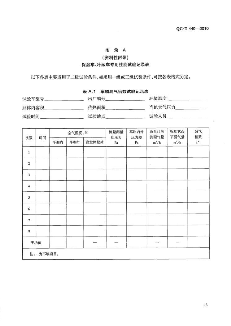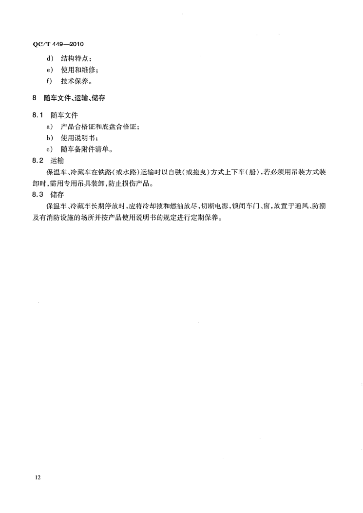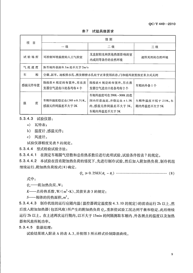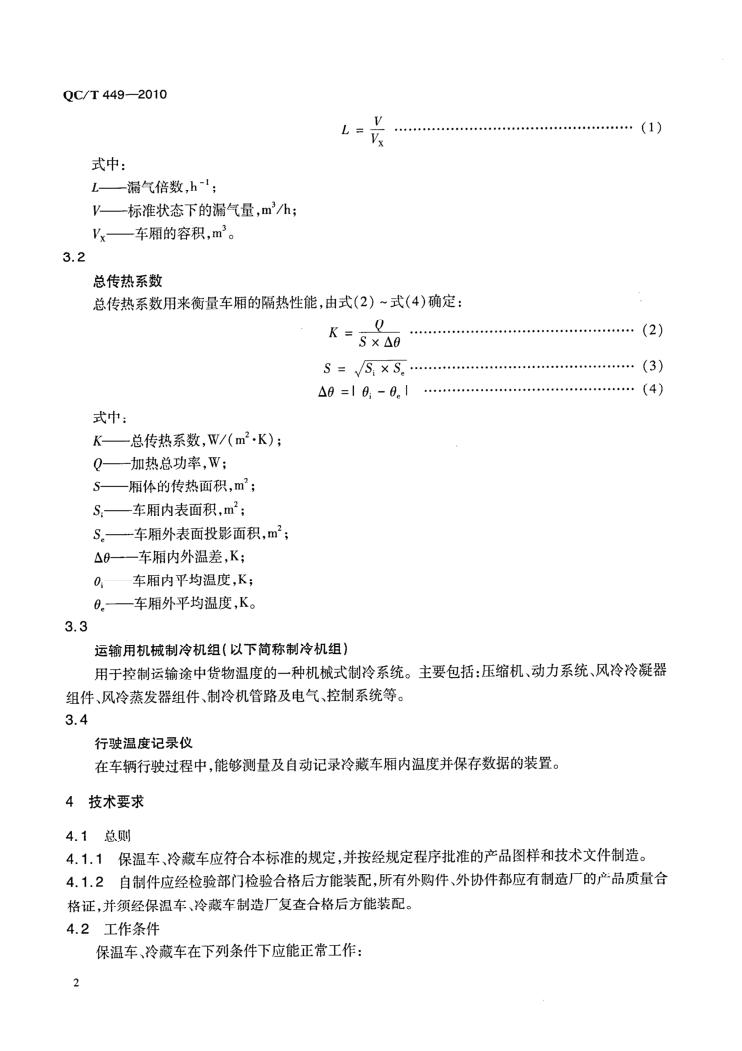 QC/T 449-2010《保溫車、冷藏車技術(shù)條件及試驗方法》