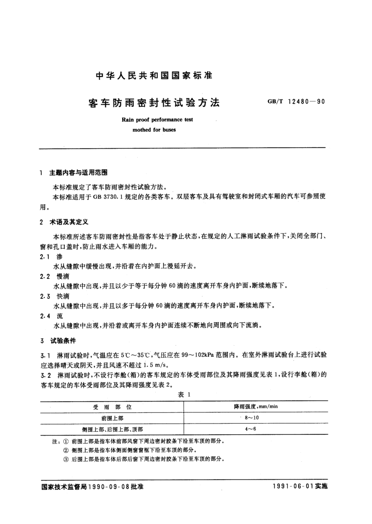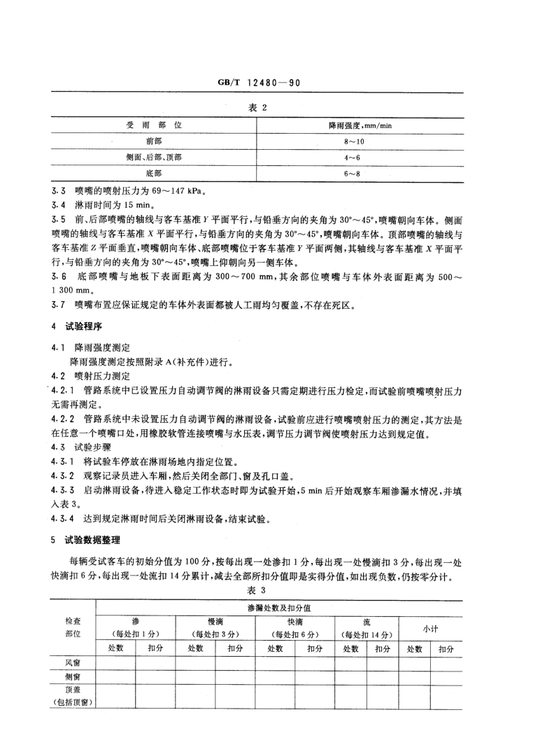 GB/T 12480-1990《客車防雨密封性試驗方法》