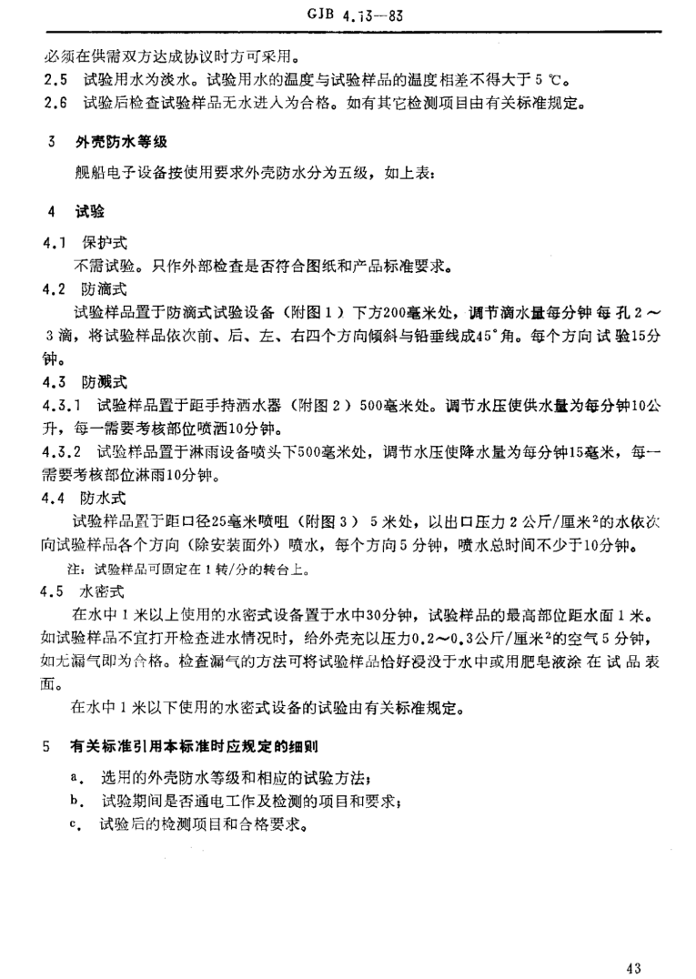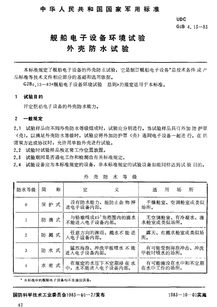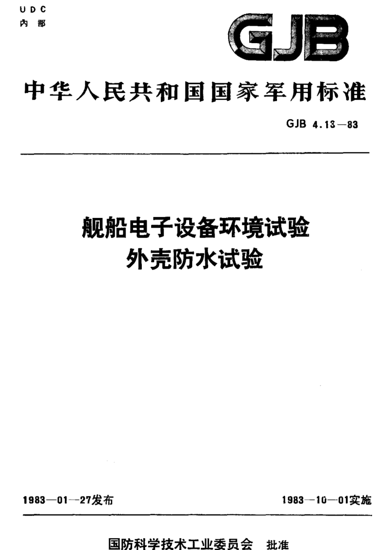 GJB 4.13-1983《艦船電子設(shè)備環(huán)境試驗(yàn) 外殼防水試驗(yàn)》