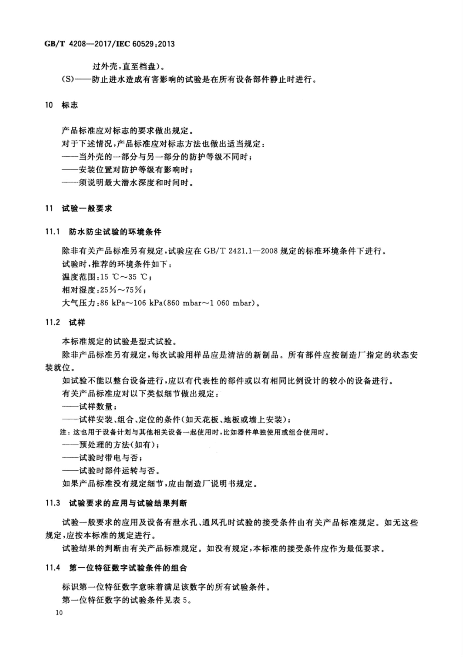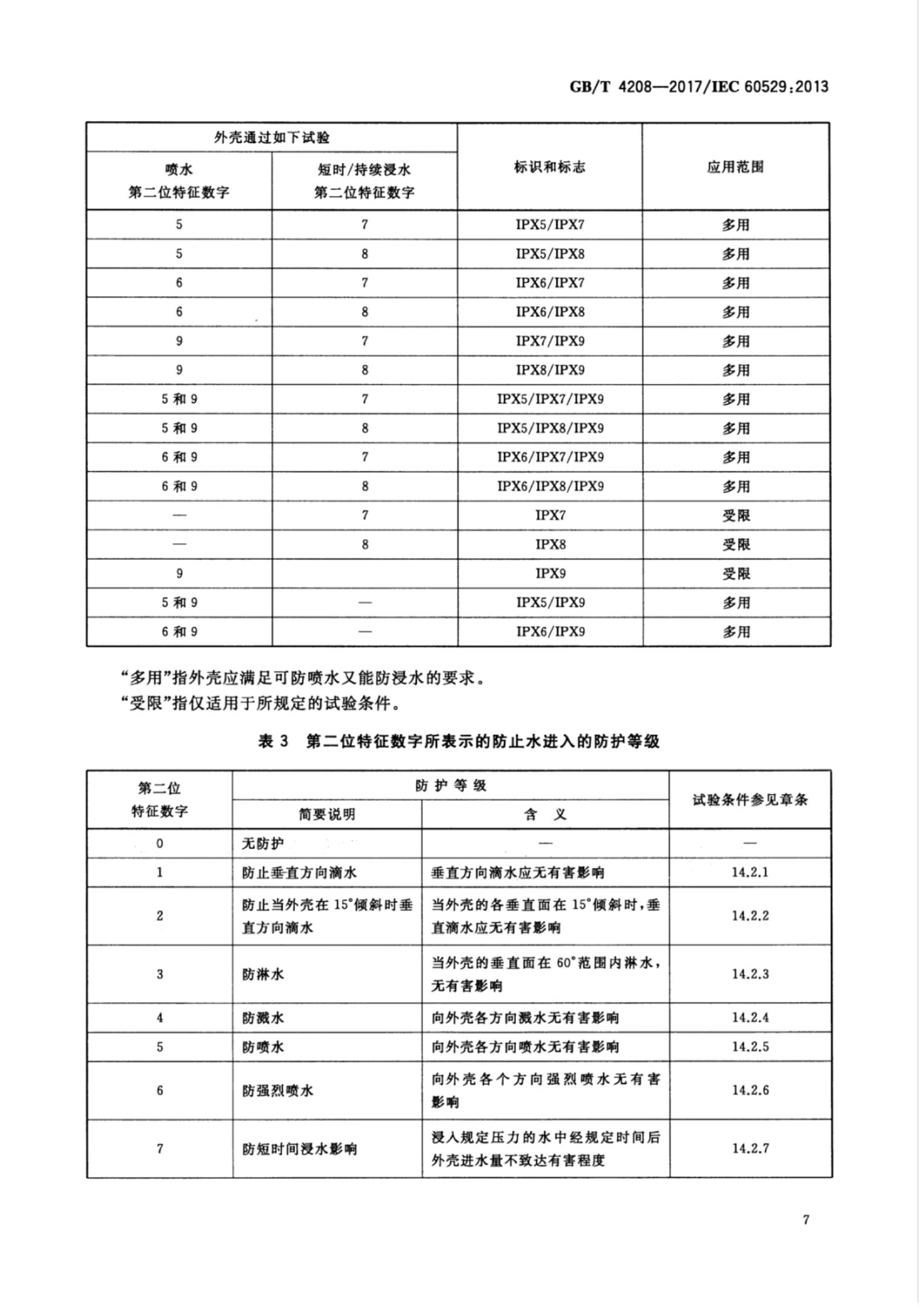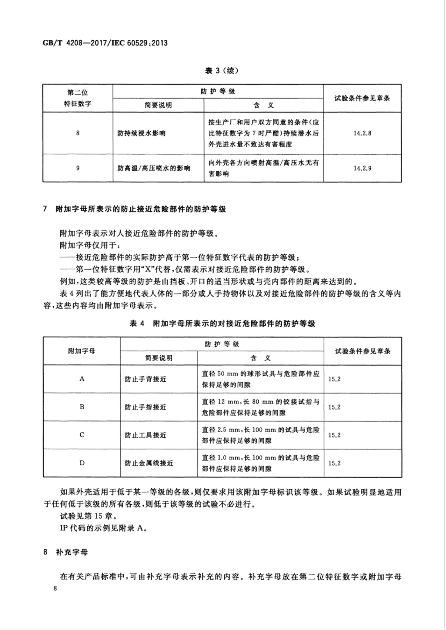 GB/T 4208-2017/IEC 60529:2013 外殼防護(hù)等級(jí)(IP代碼)