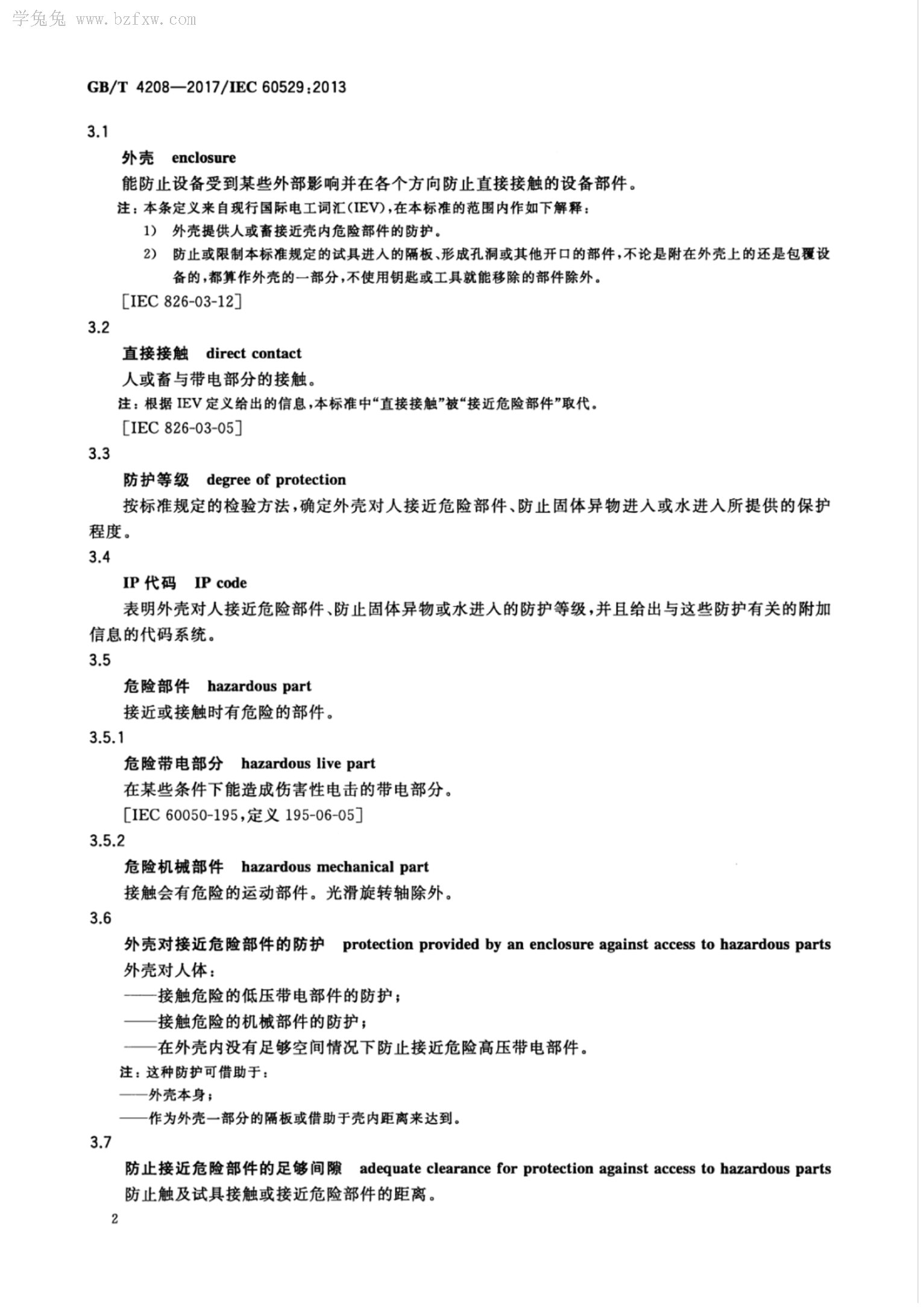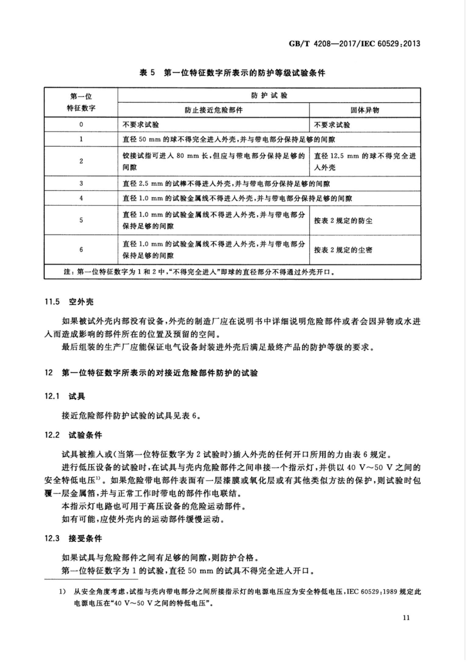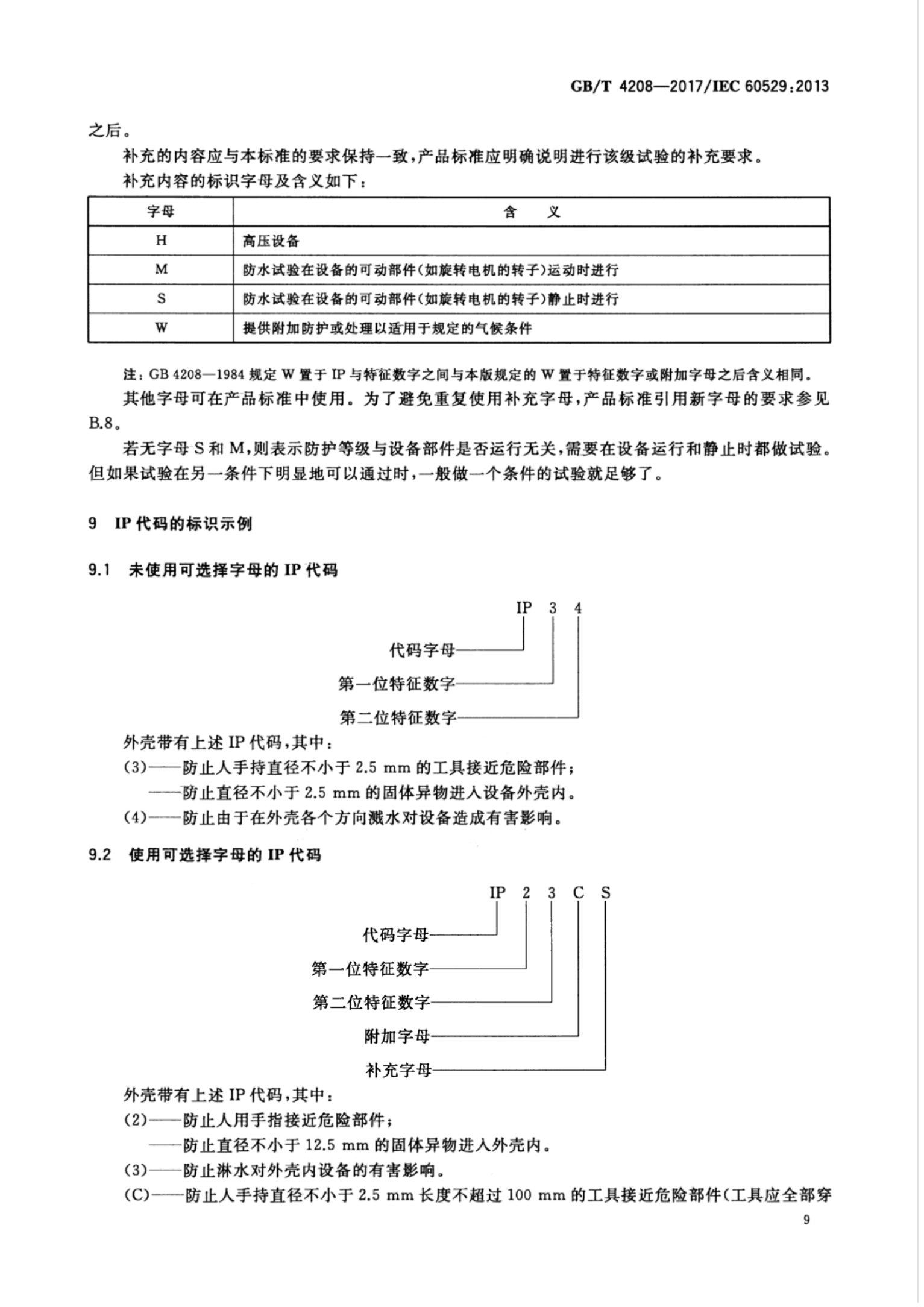 GB/T 4208-2017/IEC 60529:2013 外殼防護(hù)等級(jí)(IP代碼)