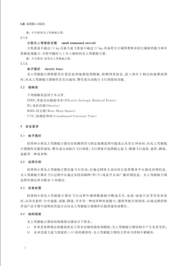 GB42590-2023《民用無人駕駛航空器系統(tǒng)安全要求》